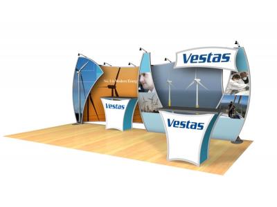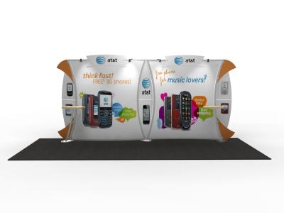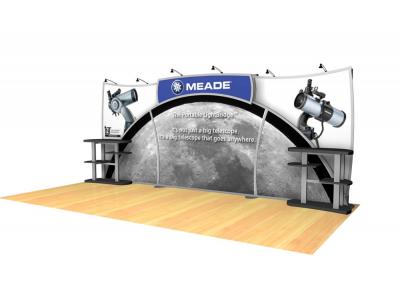 Become alluring with the Magellan Magic! Designed to draw attention and conjure up leads like no other. The VK-2123 Magellan Magic’s curved aluminum frame and large format tension fabric graphics make a dramatic statement at any trade show. Display options include workstations, monitor mounts, headers, and a matching portable counter with storage.