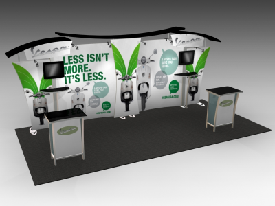 Exhibitors have asked for a fully backlit modular exhibit with all the bells and whistles for twenty years, but until now it's been cumbersome, expensive, or simply impossible. Not anymore! The VK-2971 is part of a line of modern hybrid displays that combine stunning tension fabric graphics with lightweight aluminum extrusion for an attractive and sturdy solution that is sure to steal the show. The VK-2971 includes beautiful backlit graphics, storage, large monitor capability, and standoff graphics.
