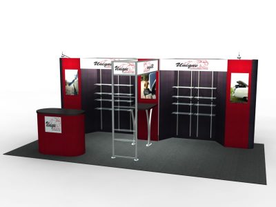 FF-202 Fabric Display: Display a large amount of product with the Intro FF-202 flat panel display and expose your booth guests to all your products in addition to a large oval counter with inside storage.