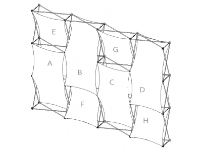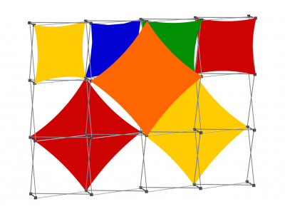 4x3 F Xpressions XSNAP Pop Up Display Optima Graphics, with the Xpression's Snap Pop Up Display system, has sure given the industry something to talk about as its' first truly 3-D exhibit system. All of us are used to the pop up displays frames that have graphics that are hung as large graphic image panels from the top hubs, however this is totally different because the skins are attached one by one.