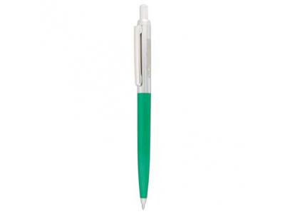 Retractable click action mechanism. Standard black ballpoint ink cartridge.