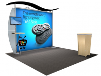 10 Ft Sacagawea Modular Hybrid Displays: The 10 foot Sacagawea Dislay has quickly become our most popular trade show display product first because of it's straight forward and simplicity in design, but also due to the unique add on accessories that the Sacagawea Display brings to highlight your presentation in unique ways.