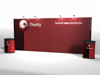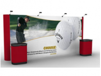 20 Ft Straight Frame Premium Pop Up: When you choose the 20' Quadro Straight Frame Pop Up Display , there's a high probabllity that you're going to really impress somebody at your next trade show with your trade show booths ! The shape of the frame with its' 18"depth, gives your booth the look of stability and permanence which will successfully carry your message to the attendees parading by your booth.
