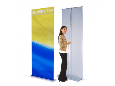 36" Silver Step Retractable Banner Stand