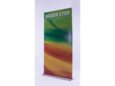 48" Silver Step Retractable Banner Stand The 48" Silver Step is a giant of a banner stand display case with real opportunities to be seen and with a price tag that's sure to please.