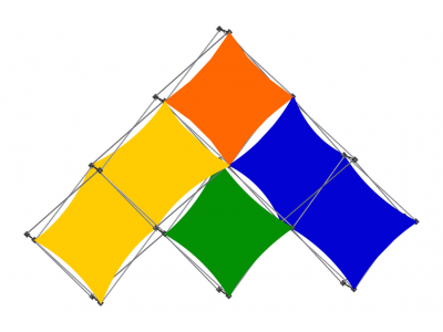 6 Quad A Xpressions XSNAP Pop Up Display When you go out into the business world to explore the many possibilities in buying a exhibit booth, none will stand out quite like the Xpression's Snap display system. When you initially see the Xpression's Snap exhibit, you understand that the system is very adaptable insofar as the single skins are able to be connected to multiple hubs, and having the ability to attach skins from the front to the back hubs is a huge design bonus. The Xpression's Snap replacement panels has such versatility, it is obvious why it has become such a popular display in the showrooms of so many trade show display distributors.