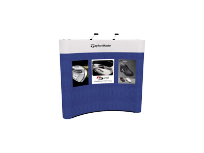 8 Foot Full Ht. Graphic Package 2: This graphic 8 foot pop up display packages combines the great looking wrap around header with 3 - 24 x 30" grahics to present your company or organization the way you want it.