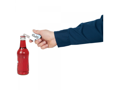 3-in-1 multi-tool. 35-inch retractable metal tape measure with standard and metric measurements. Single white LED light with slide on/off power switch. Swivel metal bottle opener. Includes metal split key ring.