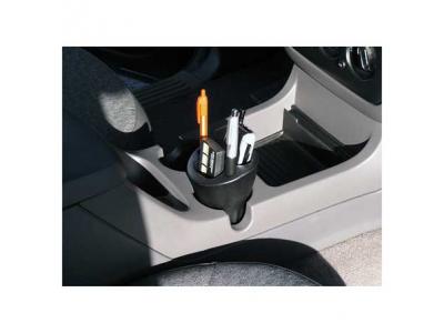 Fits in any standard size auto cup holder. 2 organizer slots for personal items and accessories. 2 pen slots. Hole in base for device charger cable. Accessories not included. Material varies in density, size & weight due to mold process which may prevent precise and uniform imprints. Imprints may break up. No half-tones