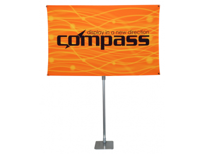 The Compass 4 Lightweight Table Top Banner Stand has a gigantic mast measuring 4' x 6' which means that you pretty much have the entire backwall behind your trade show display table covered from the top of the table up to the booth ID sign. Printed with your company branding information, you can't get this much attention with any other product for the price!