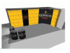 The 20’ VBurst Pop Up Trade Show Displays Kit F has one 3 x 3 curved frame flanked on one side with a 1 x 3 straight frame and on the other side with a 2 x 3 straight frame; all frames fully covered with full color dye sublimation graphics. This kit takes advantage of having a corner booth with a 90 degree angle.