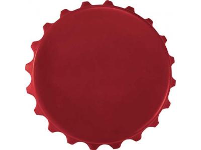 Bottle cap shaped opener offers two options for removing either twist-off or pry-off caps. Integrated magnets make this opener ideal for easy access by adhering to the refrigerator or the side of a vehicle during a tailgate.