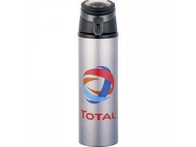 Flip-top lid. Carabiner hook attached to lid. Large opening for easy cleaning and filling. Food-grade liner. BPA free. 20oz.