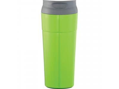 Ohh la la this double-wall stainless colorful tumbler will delight you. Easy drink through thumb-slide push-on lid. The thumb slide color matches the body. BPA free. 17oz.