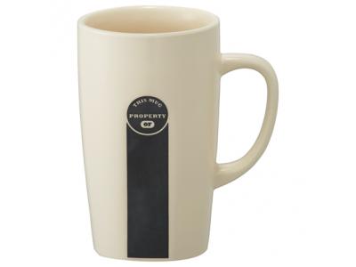 Never wonder which mug is yours with this ID mug featuring chalkboard area. Write your name directly on the designated "This Mug Property Of" space with chalk and easily wash off with water. Choose between color imprinting or our cutting edge dishwasher safe laser decorating method. Exclusive Leed's design. Chalk not included. 16oz.