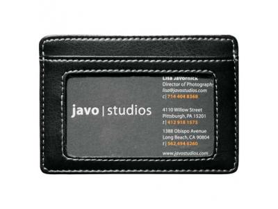 Spread brand awareness at networking functions by passing this out with pre-loaded business cards. Slim design includes two business card pockets with convenient clear ID pocket.