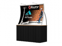 Classic Exhibits takes a very successful custom modular hybrid displays system and offers a great new product in the table top arena that gives your presentation a sophistication that you’ll not see in pop ups or flat panel systems. The Perfect 10 tension mounted dye sublimation fabric graphic mounts easily to the high quality, easy to assemble frame which comes in 7 different powder coated color options, sintra in-fills, and two halogen lights, and packaged in its’ own custom molded shipping case.