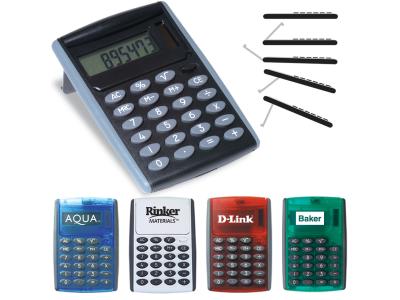 Dual-powered, full-function calculator. Jumbo eight-digit display and large, raised rubber keys. Rotating cover automatically creates an easel.