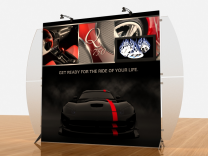 SEGUE Sunrise Tension Fabric Wall is a tension fabric displays which takes advantage of the new Silicone Edge Graphics by incorporating the SEG technology into the Sunrise graphic wall product to provide a stunning visual that is fast and effortless to set up and breaks down into a comfortable size for easy storage or transportation. Available in both 10 foot and 20 foot trade show exhibit models.