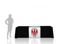 Table throws come in a wide assortment of wrinkle resistant fabric colors, are often machine washable and can be ironed. At the very least, a solid color table throw or runner will not detract from the message being delivered by the table top display that's sitting on top of it. Table runners and throws also can be purchased with the organizations' logo or tag line on it. This allows the organization to reinforce their sales message not only on the display stand but also on the table throw.