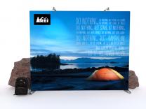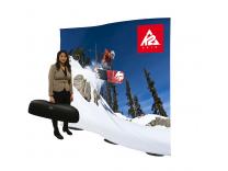 The Wall Graphic system and the Hybrid Inline System are tension fabric product that utilizes a pole pocket in both the top and bottom hems, which after The Wall frame has been threaded through the pockets on top and bottom and then stretched tight, which makes for a very efficient and sturdy structure utilizing tension fabric. The Wall is fast and easy to set up and can be strung together to create longer runs of tension fabric.