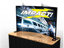 Created for one reason alone which is to differentiate your company from all other trade show exhibits on the show floor or to create a breathtaking corporate portable displays in your headquarters’ lobby. Your display will command just as much attention initially as your message will eventually with this “game changer” from Classic Exhibits. These conference displays are lightweight with its’ dye sublimation backdrop, push button aluminum framework, and comes with two 50 watt halogen lights and its’ own nylon soft side carry bag