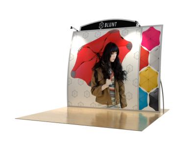 The VK-1123 Magellan Miracle's beauty is sure to WOW folks on the trade show floor, with its curved big impact graphics and sleek lightweight aluminum extrusion. Looks are only half of it, the Miracle packs small, disassembles fast, and ships in portable cases with wheels. Can be set-up in less than 30 minutes, it’s hard not to be impressed. Quick-assist knobs, and the tension fabric graphics attach with Velcro, making the whole process easy and painless.
