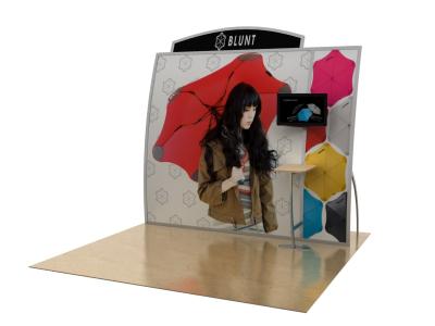 The VK-1124 Magellan Miracle's beauty is sure to WOW folks on the trade show floor, with its curved big impact graphics and sleek lightweight aluminum extrusion. Looks are only half of it, the Miracle packs small, disassembles fast, and ships in portable cases with wheels. Can be set-up in less than 30 minutes, it’s hard not to be impressed. Quick-assist knobs, and the tension fabric graphics attach with Velcro, making the whole process easy and painless.