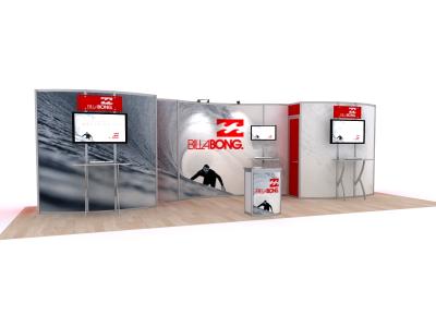 Convenient storage is essential for many trade show exhibitors. They may be distributing samples or demonstrating multiple products (but not all at the same time). The VK-2935 and VK-3004 are ideal for these exhibitors since both designs feature large walk-in storage easily accessible through a full-size door(s). In addition, all three configurations offer 1, 2, or 3 workstations and the MOD-1288 counter with an innovative iPad counter insert. The iPad can be inserted into this secure countertop in minutes without tools and removed at the end of the day. As shown, the backwall graphics are tension fabric and Sintra inserts, but all tension fabric graphics is an option.