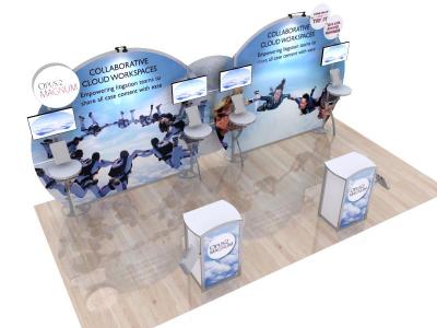 It's simple. You go to a trade show to get noticed and increase sales. So, why would you ever buy a boring display? You shouldn't. The Visionary Designs MEO Series turns portable and affordable into attractive and adaptable. The MEO Hybrid is a contemporary display designed with lightweight engineered aluminum and vibrant tension fabric graphics. Using knob-assisted assembly, the MEO sets-up quickly, typically in less than 40 minutes for a 10 ft. display. All components are individually numbered and pack in durable roto-molded cases with custom die-cut foam packaging. Options include workstations, pedestals, headers, iPad accessories, and monitors.